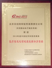醫(yī)療信息化領(lǐng)域最佳解決方案獎(jiǎng)