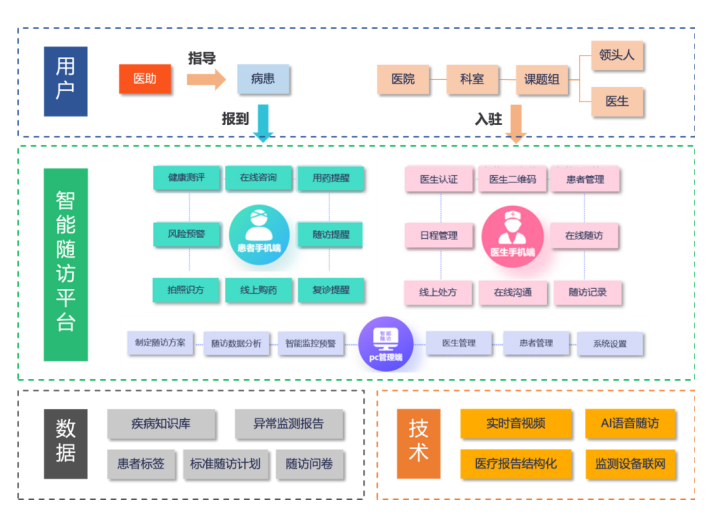 天坦智能開發(fā)的慢病管理運(yùn)營(yíng)服務(wù)是一套完整的心血管隨訪標(biāo)準(zhǔn)體系,配合適用性極強(qiáng)的醫(yī)生端可配置界面,滿足絕大多數(shù)開展冠心病介入的醫(yī)療機(jī)構(gòu)需求,同時(shí),基于專家隨訪團(tuán)隊(duì)之間的協(xié)作,建立上下聯(lián)動(dòng)的醫(yī)生互動(dòng)機(jī)制,為隨訪的患者提供專業(yè)的管理方案。匹配有人工智能為核心的隨訪管理機(jī)制,可自動(dòng)化發(fā)送患者所需要信息,量表等隨訪內(nèi)容,具備機(jī)器學(xué)習(xí)功能,針對(duì)不同醫(yī)院形成不同模式的隨訪系統(tǒng)配置,匹配個(gè)性化的醫(yī)院隨訪體系,最終以患者交流平臺(tái),建立以患者需求為中心的線上服務(wù)體系,包括專家線上咨詢、藥品直送、可穿戴式設(shè)備居家監(jiān)護(hù)、護(hù)理居家康復(fù)及圍繞手術(shù)全周期的保險(xiǎn)支付產(chǎn)品。形成以醫(yī)學(xué)+智能+個(gè)性化+支付功能為一體的新一代的慢病管理平臺(tái)。