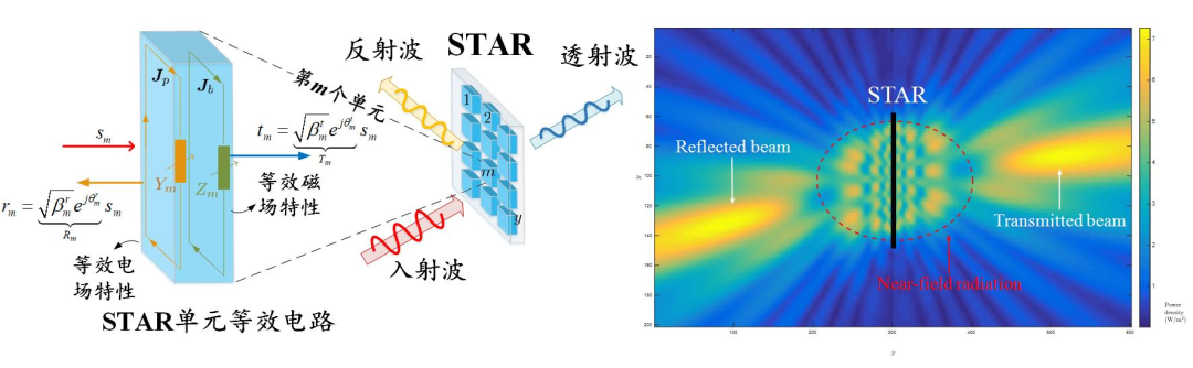 就 STARS 的控制而言,STARS 需要同時考慮每個單元折射和反射信號的控制,于是 STARS 的控制相比傳統(tǒng) RIS 更加復(fù)雜。每個 STARS 陣元需要具備獨(dú)立可調(diào)的表面電、磁阻抗,這樣,每個單元中的面電流強(qiáng)度(對應(yīng)電阻抗)和渦旋電流強(qiáng)度(對應(yīng)磁阻抗)才可以被改變,從而人為的控制其產(chǎn)生的反射和透射信號的幅值與相位,對無線信號的傳播環(huán)境進(jìn)行“人工配置”。